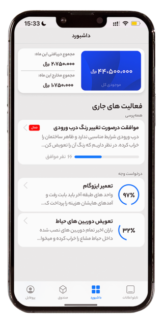 نهایی تراکنش به مدیر ساختمان نمایش داده شده و برای حسابداری کایو استفاده میشود.